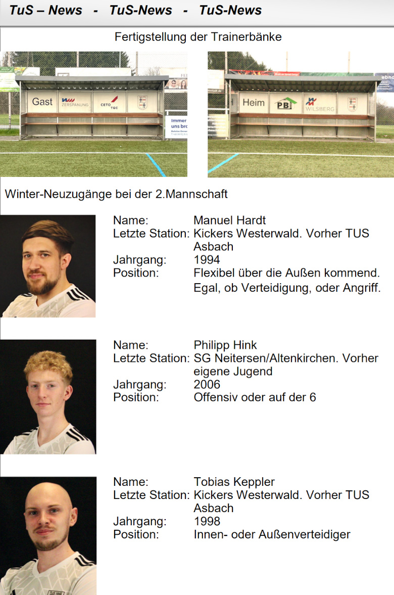 Die TuS-Reserve (8. Platz, 20 Punkte) hat am Sonntag den Tabellennachbarn SV Rengsdorf (7. Platz, 21 Punkte) zu Gast. Aufgrund dieser Tabellenkonstellation können beide Teams befreit aufspielen, da sie weder für den Auf- noch für den Abstieg in Frage kommen. Dennoch wollen beide Mannschaften einen Sieg einfahren.